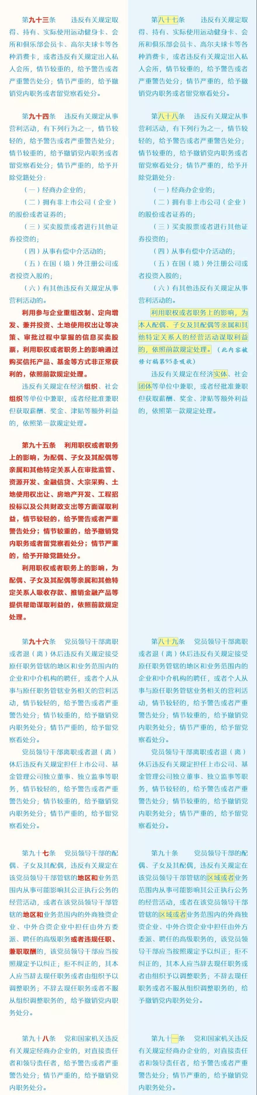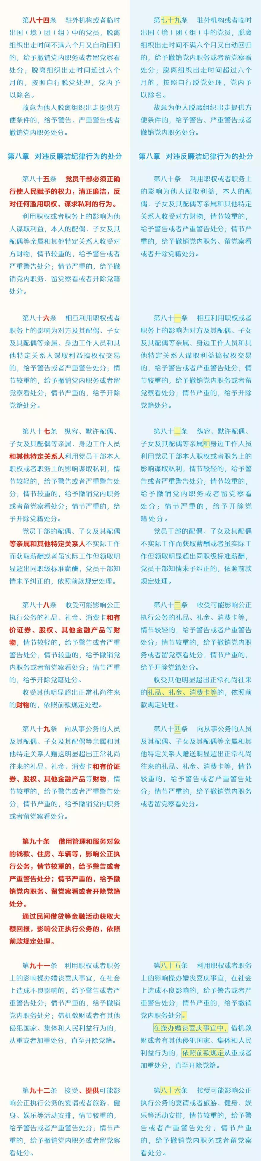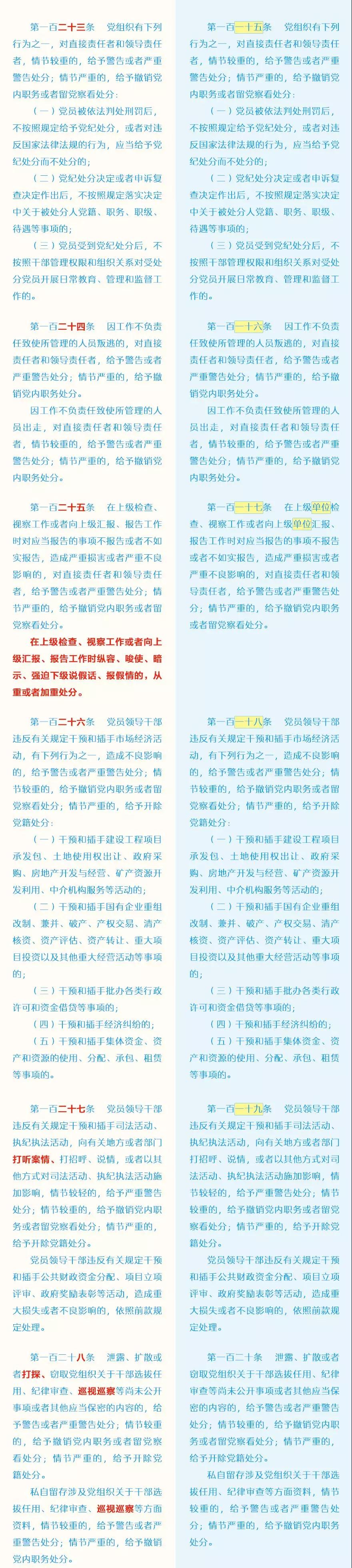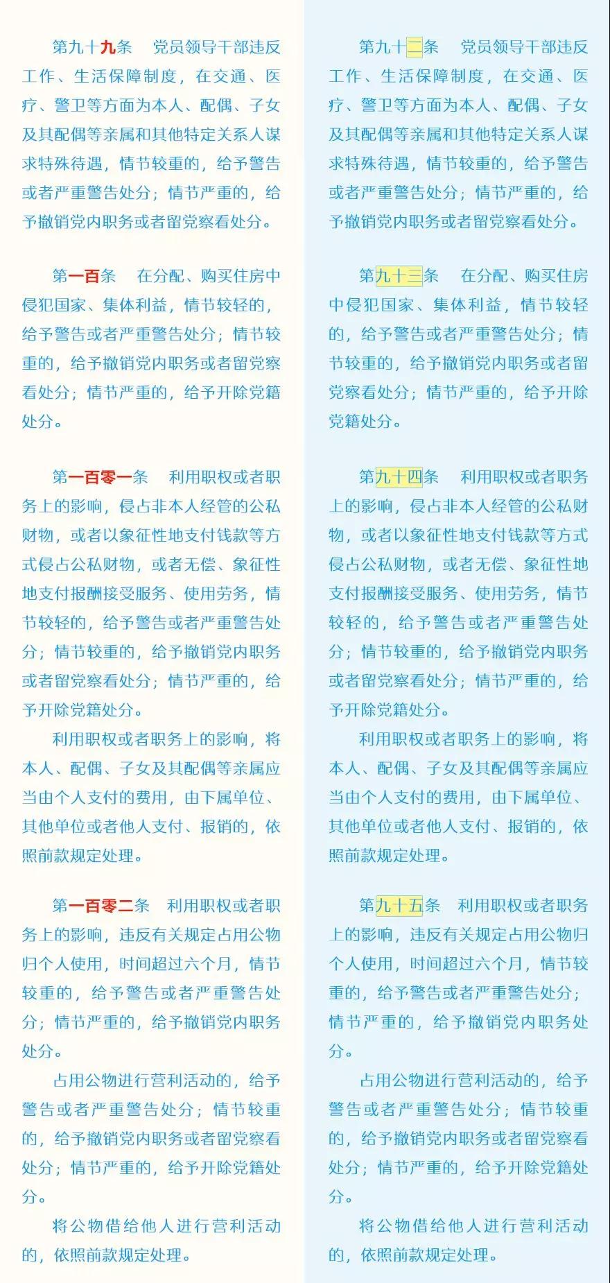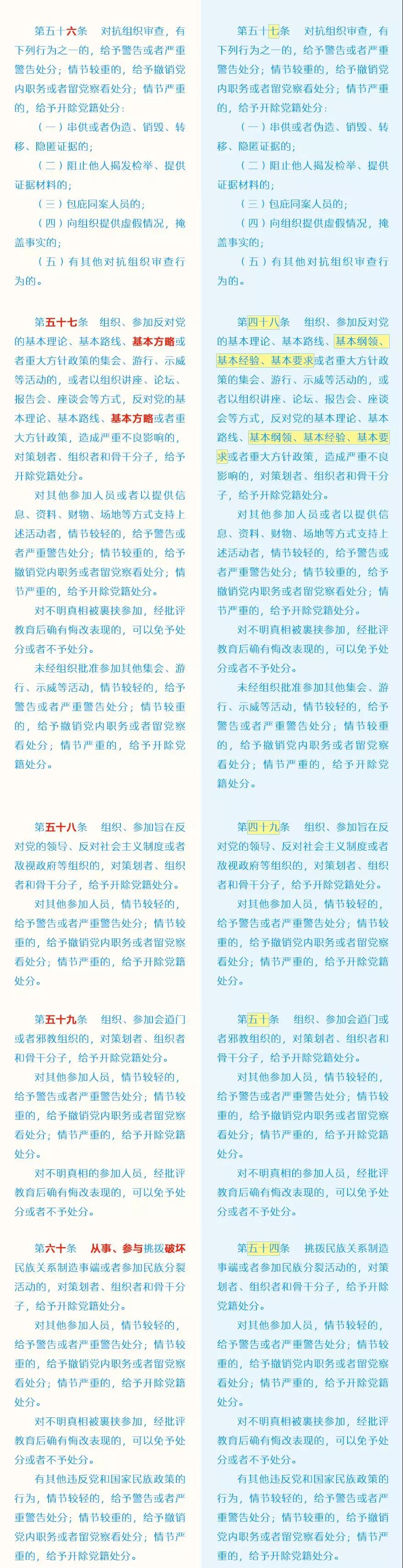 此次修訂的主要內(nèi)容包括哪些?這些變化背后體現(xiàn)了怎樣的理念?集團(tuán)紀(jì)委引用了中央紀(jì)委國家監(jiān)委網(wǎng)站的“《中國共產(chǎn)黨紀(jì)律處分條例》修訂前后最全對照表”,幫助大家讀懂新修訂的黨紀(jì)處分條例。