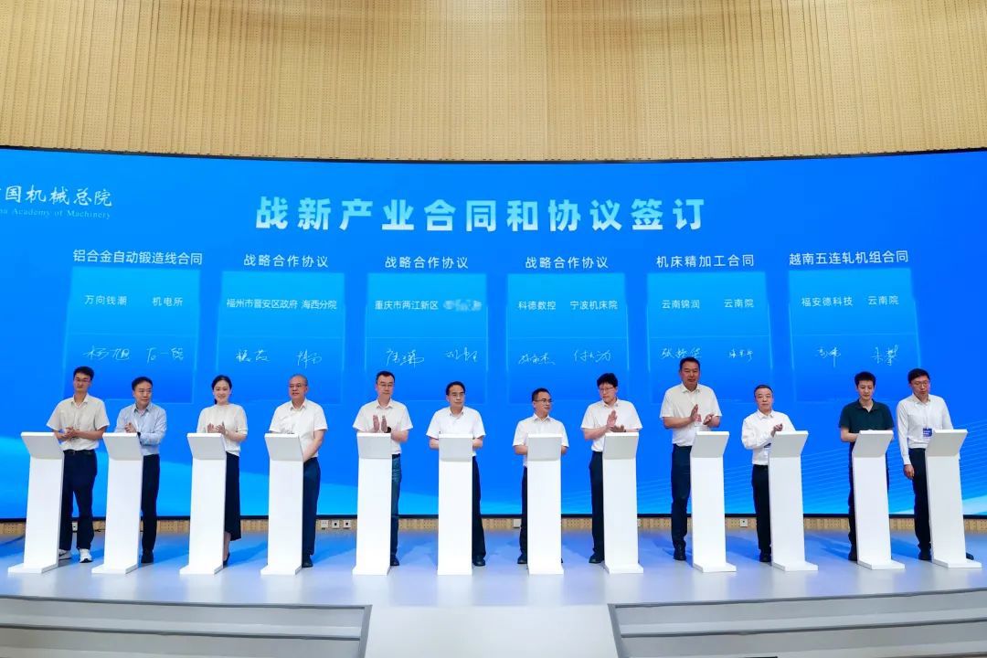 會上,中國機械總院集團及所屬公司沈鑄所、北自所、機電所、機科股份、基礎院、海西分院、寧波機床院、云南院等單位分別與中國商飛上飛公司、皖維高新、中國航發(fā)南方、中國航發(fā)中傳、東方數(shù)科、中物院八所、萬向錢潮、科德數(shù)控、云南錦潤、福州市晉安區(qū)政府、重慶兩江新區(qū)等12家企業(yè)和地方政府簽署戰(zhàn)新產(chǎn)業(yè)合同及協(xié)議。